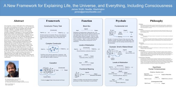 Here is the poster I presented at the 2018 Science of Consciousness conference in Tucson. I was a bit disappointed at the paucity of feedback. I don’t think most people there were interested in a mechanistic explanation of consciousness. Ah well.