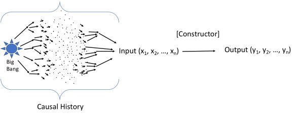 Another important implication which follows from this framework will be what we mean by causation. For the time being we can put aside the baggage that philosophers have added to the idea of causation. For now, we can say that a Mechanism causes Output when presented with Input. Also, any system of matter can be considered the Output of one or more tasks. Thus, any system of matter, including any Input, will have a Causal History which includes all of the tasks that led up to that system and going all the way (at least) to the Big Bang.